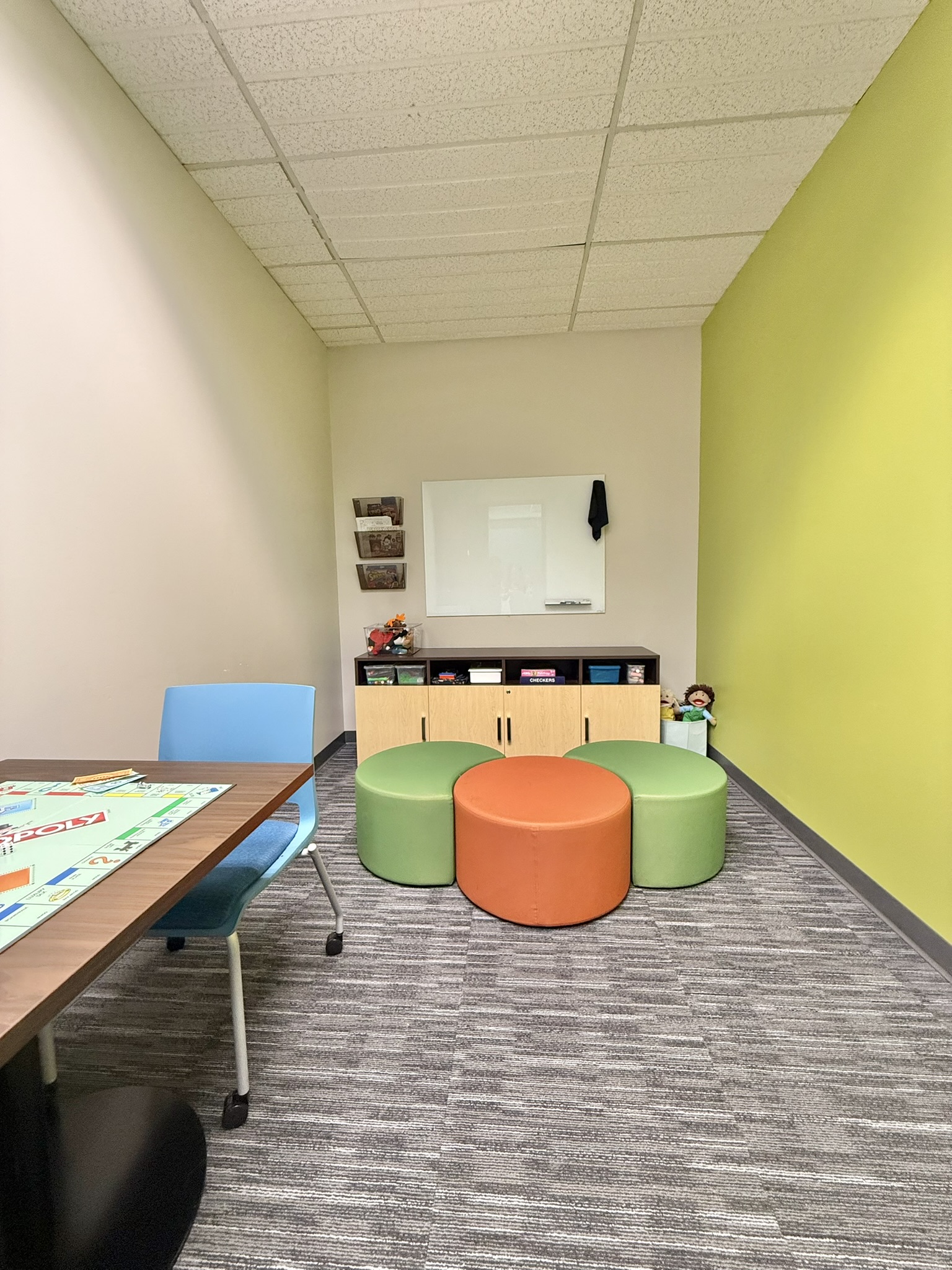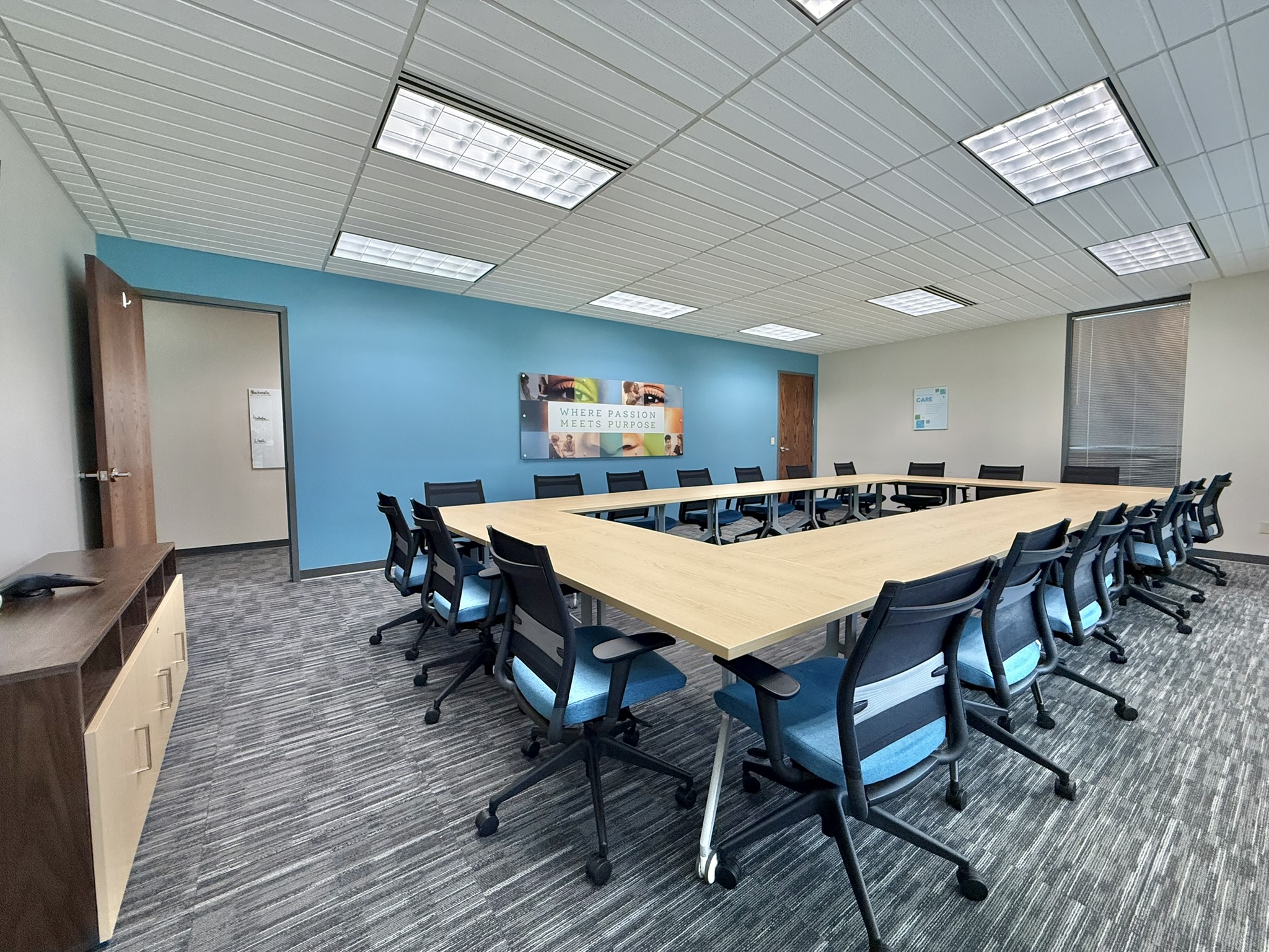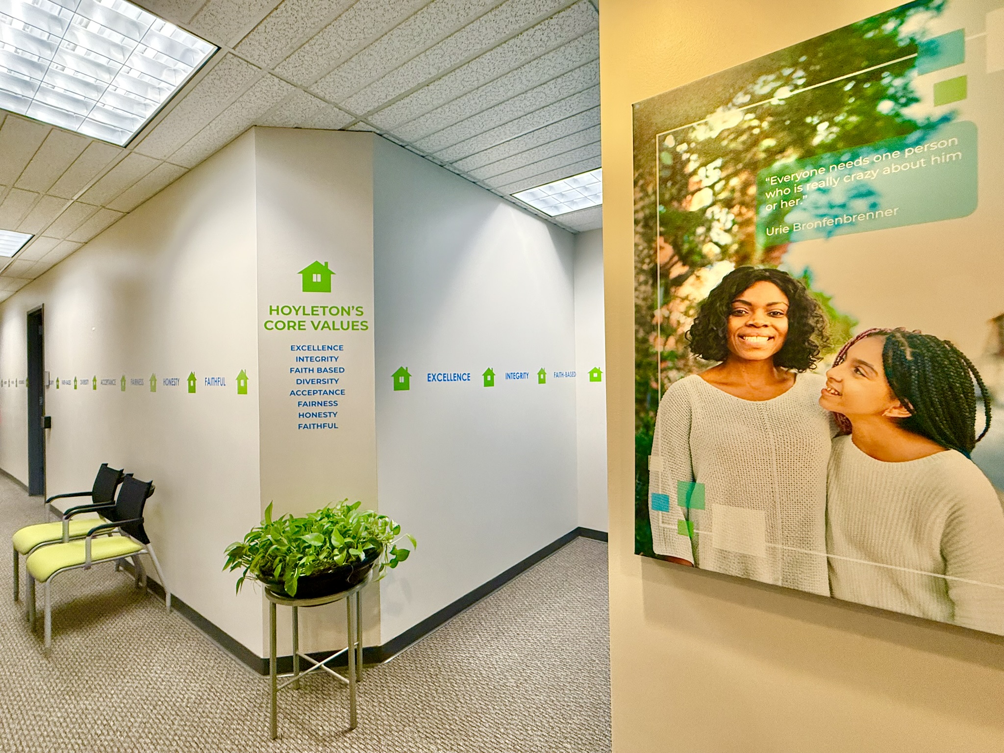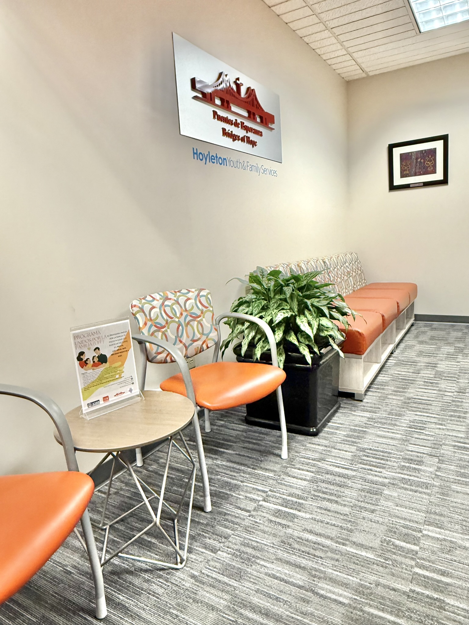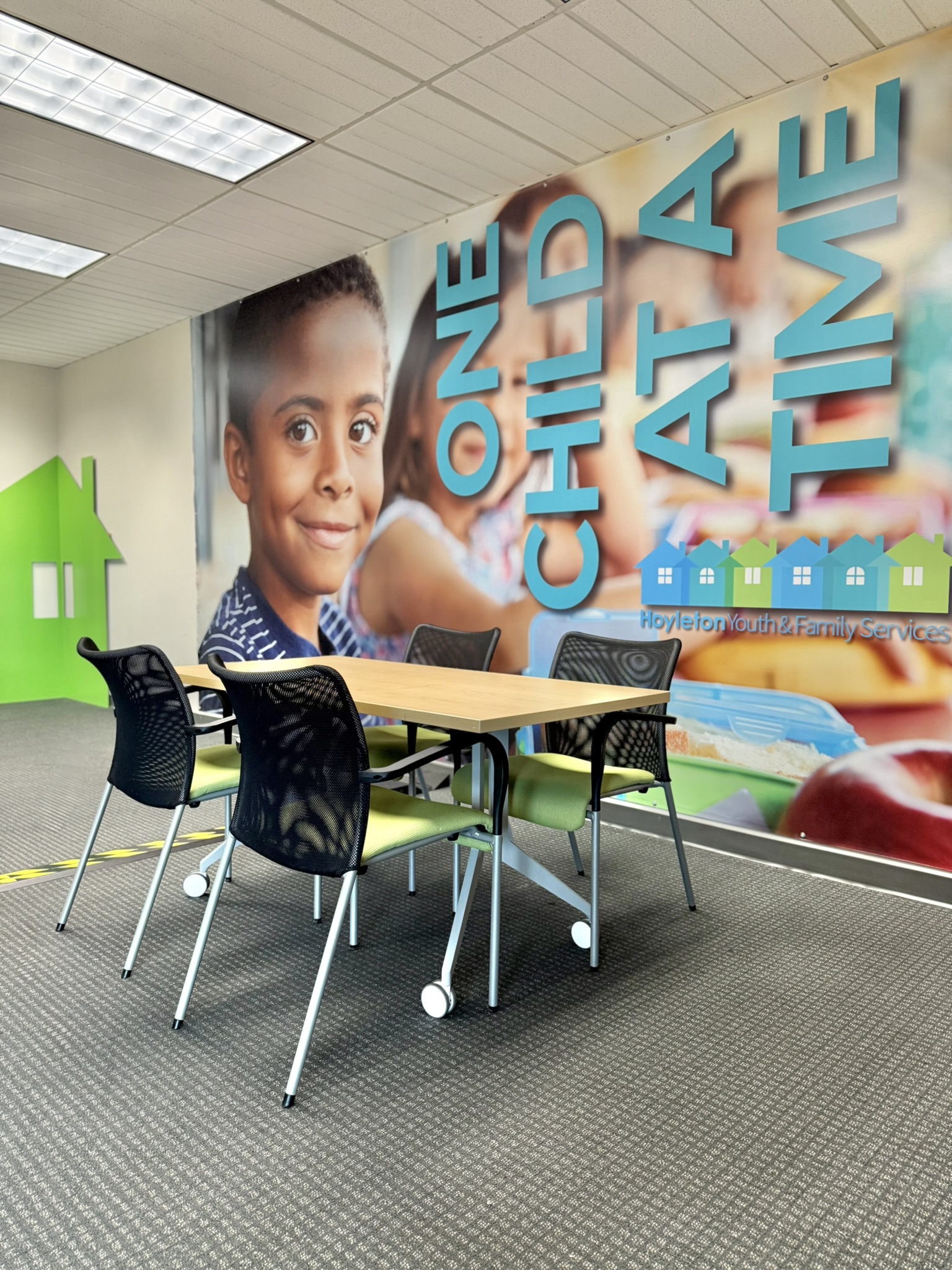 As the organization has grown, the workplace has evolved alongside it—expanding from a single floor to ultimately occupy the entire building. Today, the space supports a wide range of services including foster care, counseling, art and play therapy, community programming, and Puentes de Esperanza, Hoyleton’s Hispanic outreach initiative.