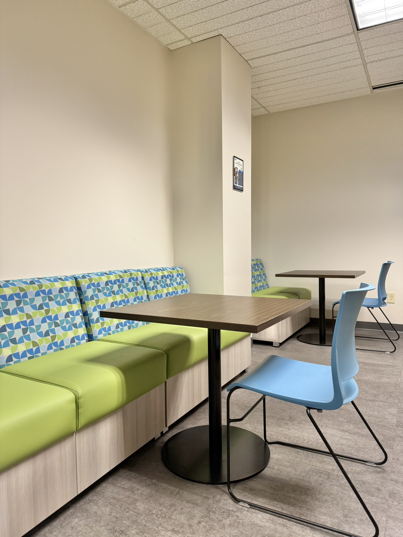 - Huddle rooms for smaller, more personal interactions and case discussions